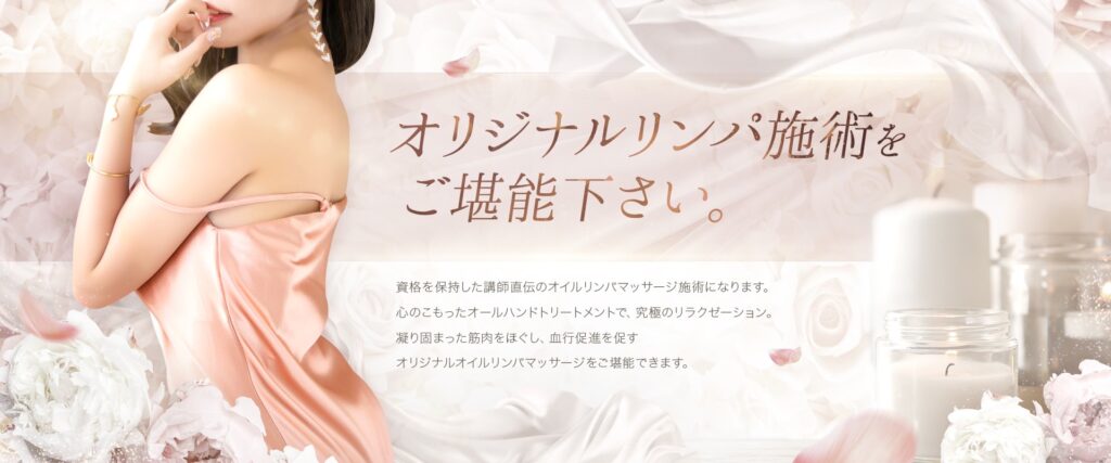 当店は、あどけなさの残る現役の学生から知的で艶めかしいお姉様系セラピスト迄幅広く在籍しており、きっとあなた好みのセラピストに出会えるはずです。 技術面では、デビュー前に技術・接客面ともに、きちんとトレーニングを積んでからデビューしております。また、精神面では、お客様の心に寄り添う優しさや気遣い、おもてなしのマインドを大切にしております。美貌と品格を兼ね備えたセラピストの「真心」溢れるおもてなしはきっとやみつきになることでしょう。